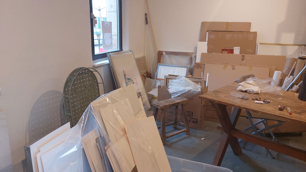 Unser Beratungsraum ist nahezu fertig. Die ersten Musterwinkel wandern aus den Umzugskartons in das neue Möbel.