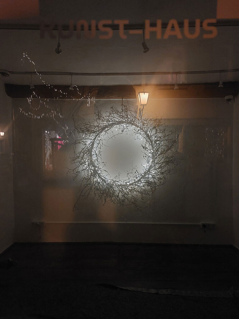 Während der Weihnachtszeit durch ein Fenster in der Schiffstraße viel fotografierter Blickfang: Unsere „Baustellenbeleuchtung“.